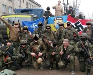 Нито дума за това, че гербът на „Азов“ е идентично копие на езическия символ „вълча кука“ (Wolfsangel), използван от нацистката SS дивизия „Das Reich“. Нито дума за това, че „Азов“ заедно с „Айдар“ и „Десен сектор“ е обвиняван в престъпления срещу населението на Донецк и Луганск – убийства, отвличания, мъчения.