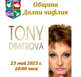 Със съдействието на община Долни Чифлик на 23 май, концерт за жителите на общината ще изнесе естрадната прима Тони Димитрова. Концертът ще се състои на площада на града и ще започне в 20 часа.