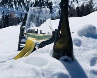 В поста на Алек се вижда как пие бяло вино на снежната писта. Подобна снимка е пуснала и Магдалена, като дори чашата е същата.