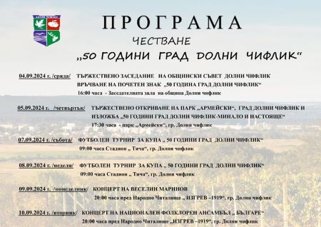 Долни чифлик чества 50 годишнина от обявяването си за град