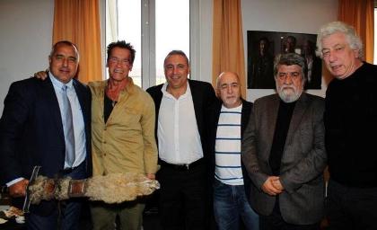И Бойко Борисов трябва трябва да се включи в екипа на „Непобедимите“, каза шеговито Арнолд Шварценегер, възхитен от добрата форма и излъчване на министър-председателя.Двамата се видяха в „Ню Бояна Филм“, а Терминатора дойде на срещата директно от снимачната площадка.В студията на „Ню Бояна Филм“ в момента се снимат „Непобедимите 2″. Премиерът и министърът на културата Вежди Рашидов подариха на бившия губернатор на Калифорния старинен револвер от Априлското въстание. Шефът на „Ню Бояна“ Дейвид Варод поднесе на премиера оригиналния меч от мега продукцията „Конан Варварина“.Шварценегер пък сподели чудесните си впечатления от възможностите на Киноцентъра, както и изрази задоволство, че българското правителство подкрепя развитието на филмовата индустрия и създава благоприятни условия за привличане на значителни инвестиции в България.