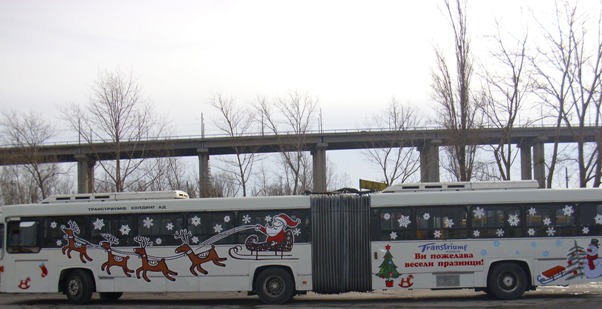 Уникална шейна на колела ще ползва тази зима Дядо Коледа във Варна, за да зарадва малки и големи с подаръци, лакомства, веселие и вълшебства преди светлите празники – Коледа и Нова година.Моторизираният Дядо Коледа е творение на „Транстриумф холдинг” АД.От понеделник, 19-и декември, до Коледа, 25-и декември, автобус на фирмата, изрисуван като шейна, ще кръстосва по всички краища на града. Зад волана сяда самият Дядо Коледа, а вътре красива Снежанка ще дарява пътниците с красоти, вкусотии и възможности за забавление.