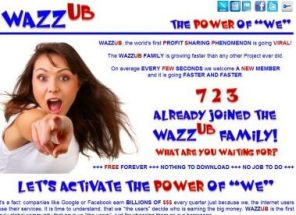 „Новата световна интернет търсачка WAZZUB, съчетана със социална мрежа , е готова да Ви плаща всеки месец част (до 50%) от рекламните си приходи, ако сега, преди 23:59 часа на 09 април 2012 г. се регистрирате на сайта й и поканите да направят същото и Вашите познати. Възможно е сумата да достигне над 300 USD месечно и при това пожизнено!“ – това съобщение изпращат от новата социална мрежа и търсачка. Предложението продължава в атрактивния дух на мултилевъл маркетинга познат добре у нас: