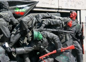 Паметникът на съветската армия пак осъмна боядисан. За разлика от 18 юни 2011 година, когато анонимните райтъри подходиха проамерикански, този път цветовете съответстват на българския трибагреник – бяло, зелено и червено. От столична община вече са изпратили служители на почистваща фирма, които да заличат следите от боята. Подчинените на кметицата Йорданка Фандъкова са на нокти след скандалите покрай предишното дегизиране на паметника. Тогава снимките на пребоядисаните като американски супергерои войници обиколиха почти всички световни медии и предизвикаха бурен обществен дебат.