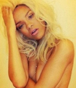 Скандалната певица Риана отново разбуни духовете, появявайки се руса и гола, без да носи дори чадър, за да прикрие своята скромност. Пиар каскадата цели промотирането на новия аромат на певицата. Звездата позира гола, носейки единствено златна огърлица, на фотосесия в Лос Анджелис, по случай старта на продажбата на новия й парфюм “Nude” (Гола/Голта). Риана показа близка до перфектност фигура и татуировки, но покривайки гърдите с ръцете си. За изненада на всички изпълнителката на “The You Da One” се е отказала от къдриците си в полза на русия цвят. В Туитър тя побърза да обясни, че новият цвят е само “временен”, съобщава “Сън“