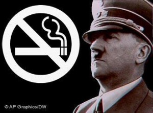 Тъкмо национал-социалистите за пръв път въвеждат купета за непушачи в железниците, забраняват автоматите за цигари и рязко ограничават рекламата на тютюневи продукти: от съответните плакати изчезват снимките на атлети, еротиката и най-вече жените, защото „Германската жена не пуши”. Германският мъж (особено по време на войната) все още имал право да се разтушава с цигара в окопите, но след „крайната победа” този вреден навик щял да отпадне. Хитлер въвежда зони за непушачи в обществените сгради и партийните централи и рязко повишава акциза върху цигарите, защото тютюнът е чужда субстанция за арийското тяло, а то изцяло трябва да принадлежи на фюрера. (И още: тютюнът е отмъщението на „червенокожите” срещу белите.)