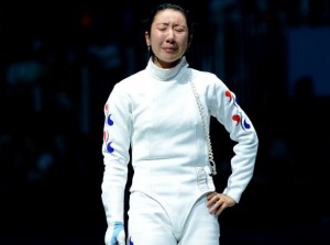 Състезателката по фехтовка от Южна Корея Шин А Лам така и не успя да преглътне загубата си на полуфинал на сабя от германката Брита Хейдеман, предаде БНТ.Проблемът бе, че при резултат 5:5 оставаше една секунда до края и двете фехтовачки предприеха едновременна атака. Тогава Хейдеман се оказа по-прецизна, но треньорът на Лам скочи срещу съдиите с мотива, че времето е изтекло.Разправиите продължиха близо 20 минути, като накрая дежурният делегат отсъди точка в полза на германската състезателка и победа с 6:5. Тогава корейката седна на игрището и започна да плаче.След като напразно се опитваха да я изкарат, за да могат следващите мачове да продължат, само генералният секретар на международната федерация Максим Парамонов успя да я изведе.