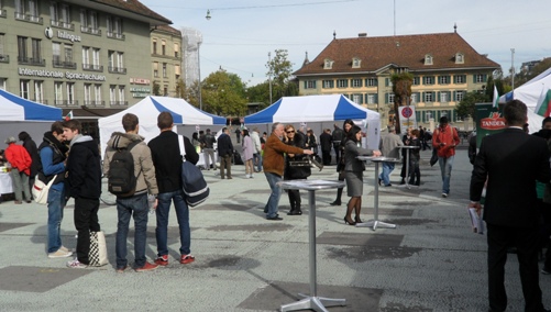 България се представи с храни на изложение „Български ден на виното и деликатесите” в центъра на Берн, столицата на Швейцария. Организатори са Министерство на земеделието и храните, Изпълнителната агенция по лозата и виното и Посолството на България в Швейцария.България за първи път се представя с подобно събитие в Швейцария и то на централния площад „Waisenhausplatz” в Берн, заяви при откриването посланикът в Швейцария Н.Пр. г-жа Меглена Плугчиева. Страната ни е непозната сред швейцарците и трябва да направим всичко възможно да представим българската кухня, традиции и възможности за туризъм, допълни тя. „В Берн се представяме с едни от най-големите изби, производители на прекрасни български вина. Надяваме се да пробием на този пазар”, заяви изпълнителният директор на ИАЛВ инж. Красимир Коев. Петър Рам, който е единственият вносител на български вина в Швейцария, посочи, че самият той е и винопроизводител, и оценява като много добри и качествени българските вина. Надявам се още повече да се отвори швейцарският пазар за българските вина, допълни той. Изложението в Берн е разположено на площад „Waisenhausplatz” и е на открито. Швейцарците могат да опитат български вина, месни продукти, кисело мляко и млечни продукти, както и да пробват продукти от розово масло. Със собствени щандове са представени винарските изби Катарджина, Санта Сара, Едуардо Миролио, Ангелус Естате, Вила Ямбол, Домейн Пещера и Сайкъл. Месни продукти има на Тандем, Чех, Градус и Маджаров. Млечни продукти са изложени на ЕлБи Булгарикум и Маджаров. Розовите продукти на изложението са на Института по розата – Казанлък.
