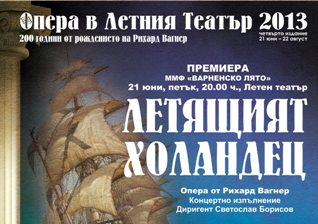 Опера в Летния театър – Варна 2013 се открива на 21 юни от 20.00 ч. с премиерното концертно изпълнение на операта «Летящият холандец», посветено на 200-годишнината от рождението на Рихард Вагнер. Със своите музикални драми и дръзки търсения Рихард Вагнер остава в музикалната история като един от най-големите реформатори на оперното изкуство. Целият живот на гениалния композитор, също поет и писател, преминава в отстояване на идеите за едно по-различно изкуство. Вагнер сам пише текстовете на всички свои произведения, а книгите му в областта на история на изкуството и до днес предизвикват интерес.