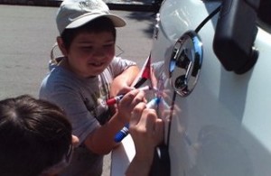 Деца рисуват върху автомобил във Варна