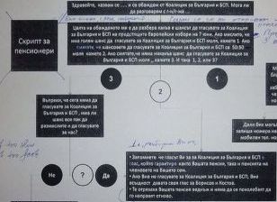 Прихванат „Скрипт” на телефоннитe уж маркетингови проучвания на БСП преди евроизборите през юни 2009 г. е на път да взриви нов скандал в държавата и да покаже как се печелят гласове на избори по втория начин, показа проучване на Агенция ПИК. Става ясно, че БСП са използвали личните данни на близо 2 млн. българи за агитация чрез телефонни обаждания. Все още не е ясно дали автор на идеята е Моника Станишева или някой от „червените“ пиар стратези. ПИК се добра до подробна схема на указанията, с които са провеждани маркетинговите проучвания. От нея се разкрива сценарият, който наетите служители са разигравали. Описани са три варианта, които трябва да се спазват по време на разговора с „анкетирания“. По този „скрипт“ можете да си направите извода дали това е било проучване, както твърдят от БСП или типична за инициаторите манипулация и черен ПР. Това означава, че на изборите е имало тотална манипулация, каквато се случи и миналата година с Костинбродските бюлетини.