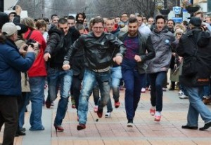 Десетки мъже се надбягваха с обувки на високи токчета на столичния булевард „Витоша“ във второто шествие против домашното насилие „Извърви киолометър в нейните обувки“. Всяка година през март все по-голям брой мъже по света и техните семейства се присъединяват към инициативата. По този начин месецът, в който празнуваме Международния ден на жената, се превръща в период от годината, когато мъжете показват подкрепата си към жертвите на домашно и сексуално насилие. „Walk a mile in her shoes“ (www.walkamileinhershoes.org) е международна инициатива, започнала през 2001 г. На тези демонстрации мъже, обути в дамски обувки, привличат общественото внимание върху насилието над жени, изнасилванията и сексуалния тормоз, и набират милиони долари в помощ на кризисните центрове за жертвите.