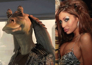 Ако сте се чудили на кого ви прилича силиконката Джулиана Гани, неизвестен потребител във Фейсбук откри приликата. Според ананомния творец Мис Силикон е пълно копие на героят от „Междузвездни войни“ Джар Джар Бинкс. Той е извънземно – гунган и също си пада по бляскавите дрешки, като „светската“ персона. Другите прилики, които анонимния потребител е открил, са в огромните устни и подчертани очи. В анимацията на Джордж Лукас, направена по оригиналния филм, Джар Джар прекарва по-голяма част от времето си под водата и се прехранват с всичко, което намери. Гани пък прекарва повечето си време в нощните клубове и едва ли остава гладна. Колажът вече се завъртя в социалните мрежи и натрупа похвални коментари за автора. Джулиана Гани е от момичетата, които трупат бърза слава без да са допринесли с нищо и дразнят аудиторията с изкуствените си тела и фриволно поведение.