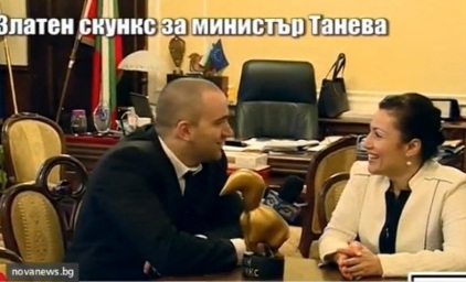 „Чиста ли сте като момина сълза, г-жо Танева!?”, запита репортерът, в отговор на което министърът отговори: Абсолютно! И допълни: „Който не си върши работата в полза на обществения интерес трябва да си тръгва”. Министър Танева прие скункса, като обеща да си сложи наградата на бюрото, защото не се притеснява.