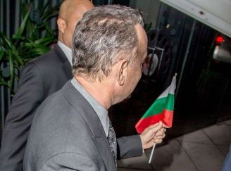 Том Ханкс развя българско знаме в Лондон, където представи новия си филм „A Hologram For The King“. Актьорът мина снощи по червения килим в британската столица. Той прие от феновете подарен му малък трибагреник и го размаха, пише Bulphoto. Актьорът не беше придружен от съпругата си Рита Уилсън (59), която е с български корени. Рожденото й име е Маргарита Ибрахимова. Баща й Хасан Халилов Ибрахимов е българо-мохамеданин от село Брещене, Гърция. Преди да емигрира в САЩ, той живее в България, където остава брат му Ферхат. Майката на Рита Уилсън – Дороти, е родена в гръцко село на албанската граница. Рита е родена в Лос Анджелис. С Том се срещат на снимките на телевизионното шоу „Bosom Buddies“, но връзката им започва, докато работят по историческия филм „Доброволци“. Двамата се женят през 1988 г., имат 2 деца. Ханкс има още 2 от предишен брак.
