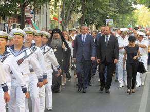 Веднага след това започна паметно шествие, водено от кмета на Варна Иван Портних – по бул. „Мария Луиза“ до паметника на загиналите в Сръбско-българската война. Там бе отслужена заупокойна литургия от Варненския и Великопреславски митрополит Йоан, след което бяха положени венци и цветя с военен ритуал. В тържествата се включиха кметът Иван Портних, областният управител Стоян Пасев, председателят на saedОбщинския съвет Тодор Балабанов, вицеадмирал Емил Ефтимов – зам.-началник на отбраната, контраадмирал Митко Петев – командир на ВМС, главен комисар Даниел Пашов, директор на ОД на МВР – Варна, народни представители, районни кметове, общински съветници, представители на политически партии, граждански организации и сдружения. Честването на Съединението бе организирано от Община Варна, с подкрепата на Военноморските сили и Варненската и Великопреславска митрополия.