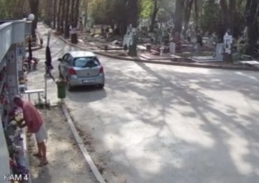 Мъж на средна възраст си събра цветя, оставени пред урни на покойници на централните варненски гробища, посред бял ден. Кощунството е заснето от една от камерите, монтирани на територията на гробищния парк. Мъжът, който видимо е добре облечен, паркира автомобила си пред стената с урните, информира varnautre.bg Сяда на поставената пейка и си взима цветя, оставени пред една от урните. Следва кратка разходка пред стената и отново избор на цветя, оставени пред урна на покойник. След като си е подбрал няколко свежи китки, мъжът оставя цветята на задната седалка на колата си и отново седя на пейката. В този момент по алеята се задава пешеходка. След преминаването й крадецът на цветя се качва в автомбила си и потегля.