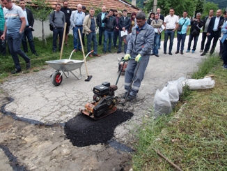 След приключване на презентациите, нагледно бе демонстрирано смесването на фрезован асфалт с високоякостен модификатор. Двама работници смесиха асфалта с модификатор и запълниха улична дупка пред присъстващите. Инж.Колелиев разясни, че сместа може да се използва от -10 до +40 градуса температура, трябва да се изразходва до 48 часа от приготвянето й, и има по-дълга гаранция от обикновения асфалт. Цената на 1 тон от сместа струва между 140 и 150 лв. за тон, като технологията за производството й е патентована от фирма „Пътища и мостове“ и специалисти-химици. Кметовете на общини споделиха, че фрезованият асфалт се изхвърля извън населените места и хората сами запълват с него дупки по улиците. Росен Колелиев призова въпросът за използването на рециклирания асфалт да бъде поставен пред Националното сдружение на общините, да се коригират някои нормативни ограничения и новата технология да бъде приложена в населените места.