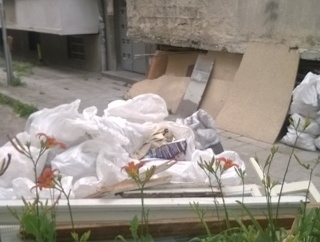 Торби със строителни отпадъци стоят вече над 10 дни в междублоково пространство на ул.Марин Дринов, до ъгловия блок, където улицата се пресича с ул.Македония. Работници правят ремонт на първия етаж и явно нямат намерение да махнат строителните отпадъци. Това е в разрез с член 8 от Наредбата на Община Варна за опазване на обществения ред, който гласи, че се забранява складирането на строителни материали около улици, сгради, междублокови пространства и тротоари за повече от 24 часа. Глобата за подобно деяние е от 50 до 150 лв. Очакваме реакция от дирекция „Обществен ред и сигурност“ в Община Варна.
