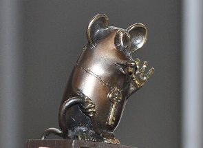 Скулптура на мишка, която държи опашката си връчват от туристическа платформа