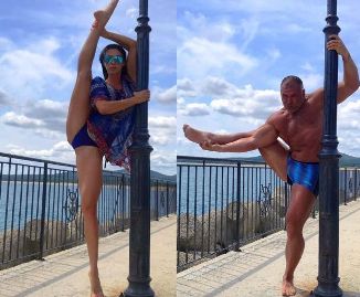 За Биляна Йотовска няма невъзможни неща. Фитнес миниачката реши да покаже колко е гъвкава, докато е на почивка, информира data.bg Йотовска се хвана за лапма и вдигна единия си крака във въздуха, след което го изправи, а другият й остана на земята. Биляна направи това без никакъв проблем, като дори позира за снимка. Не толкова гъвкав се оказа съпругът й Митко Димитров. Здравенякът не успя да повтори упражнение на жена си, но все пак той е с няколко години по-голям от нея, а и тежи доста повече от половинката си.