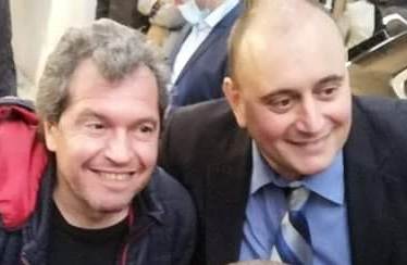 На снимката: Сашко в дружеска прегръдка с Тошко Йорданов