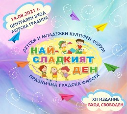 Най-мащабният детски и младежки културен форум „Най-сладкият ден” ще зареди с чиста радост и енергия празника на Варна.12-тото издание на фиестата ще се проведе в навечерието на Успение Богородично и Празник на Варна, 14 август. Ето какво още съобщават организаторите – PR и Рекламна агенция „Протема” и „Пресклуб Варна”: