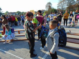 чето с вода и здравец по пътя на учениците към вратите на училището. Влизайки в класните си стаи децата останаха приятно изненадани от подаръка, който общинската управа осигури на всички първолаци в общината – книжка с народни приказки и несесер с всичко необходимо за работата им в клас.