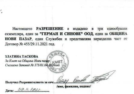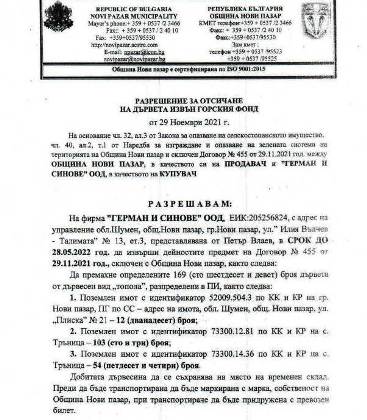 Жената на снимката е Златина Таскова, зам.кмет на община Нови пазар. Преди да стане зам.кмет е работила в помощно училище „Станата“. С нейно разрешение фирма „Герман и синове“ ще отсече 169 здрави тополи в землището на село Тръница. Възползвайки се от Закона за опазване на селскостопанското имущество, чл.32 ал 3, която гласи: „Разрешение за отсичане и изкореняване на по-голям брой дървета и на лозя над 1 декар се дава от началника на управление „Земеделие“ при общинската администрация въз основа на писмена молба и при наличие на крайно уважителни причини.“, Златина Таскова е издала разрешително за изсичане на 169 тополи в село Тръница. За изсичането на дърветата няма НИКАКВИ КРАЙНО УВАЖИТЕЛНИ ПРИЧИНИ – единствената причина е задоволяването на частния интерес на фирмата „Герман и синове“.