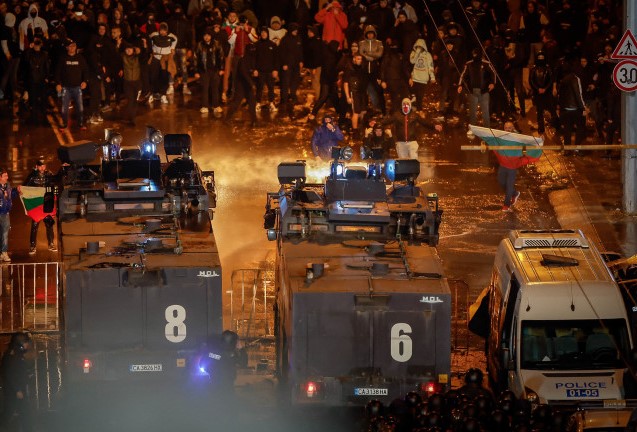 На място бе докарано и водно оръдие, което влезе в действие. Протестиращите бяха изтласкани от органите на реда.