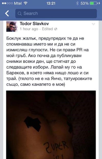 Става дума за същата Деси, за която Тодор Славков преди време написа пост и публикува снимка на голо женско тяло с татуировка.