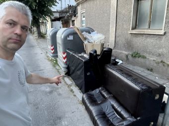 Продължих обиколката си из квартала и на един ъгъл срещнах човек с куче, седнал пред затворено магазинче. Срещу него – празни контейнери, но с образувано сметище около тях: предимно големи кашони, дивани и торби с дрехи и натрупани чували с битов боклук върху тях, които пречеха да се стигне до съдовете.