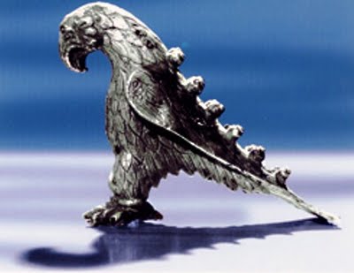 Копието е дело на запорожкия скулптор Андрей Яремко и е придружено със сертификат, подписан от директора на Запорожкия краеведски музей Г. Шаповалов.Копието е от лят посребрен бронз и тежи точно колкото и оригинала – 1235 г.Смята се, че орелът е част от върха на пленено в бой византийско знаме (щандарт). Орелът е представен в момент на борба със змия. Стилистиката му подсказва източен произход, където орелът символизира небесното духовно и божествено начало, а змията – земното, материално и сатанинско начало.